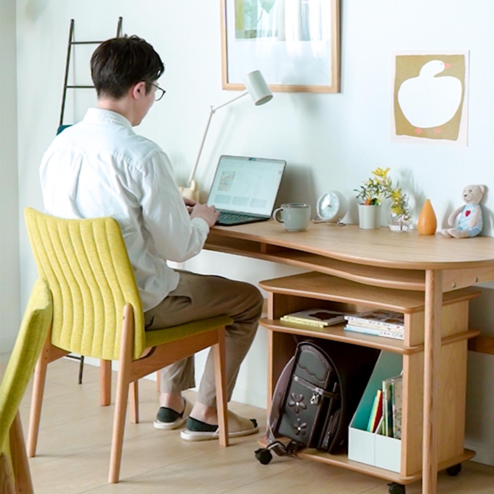 フランス語で神秘的・ロマンチックを意味するMirageシリーズ。その名の通り、機能的で親しみやすさを感じる家具でありながら、その見た目は、どこか優美な雰囲気をまとっています。大切な人たちが自然とまわりに集まってきて、あたたかな時間と空間を共有する。そんな幸せな暮らしに寄り添う、ぬくもりとくつろぎを追求したシリーズです。