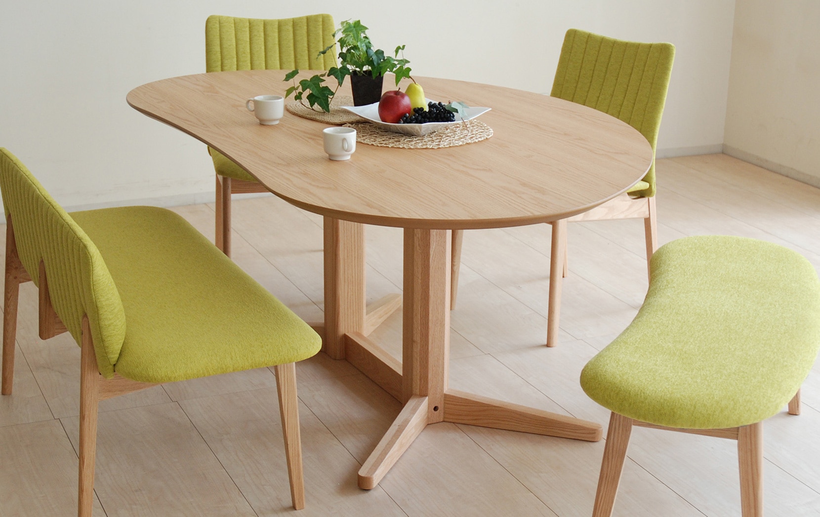セットで置くとダイニング全体がとても柔らかな印象に変わります。