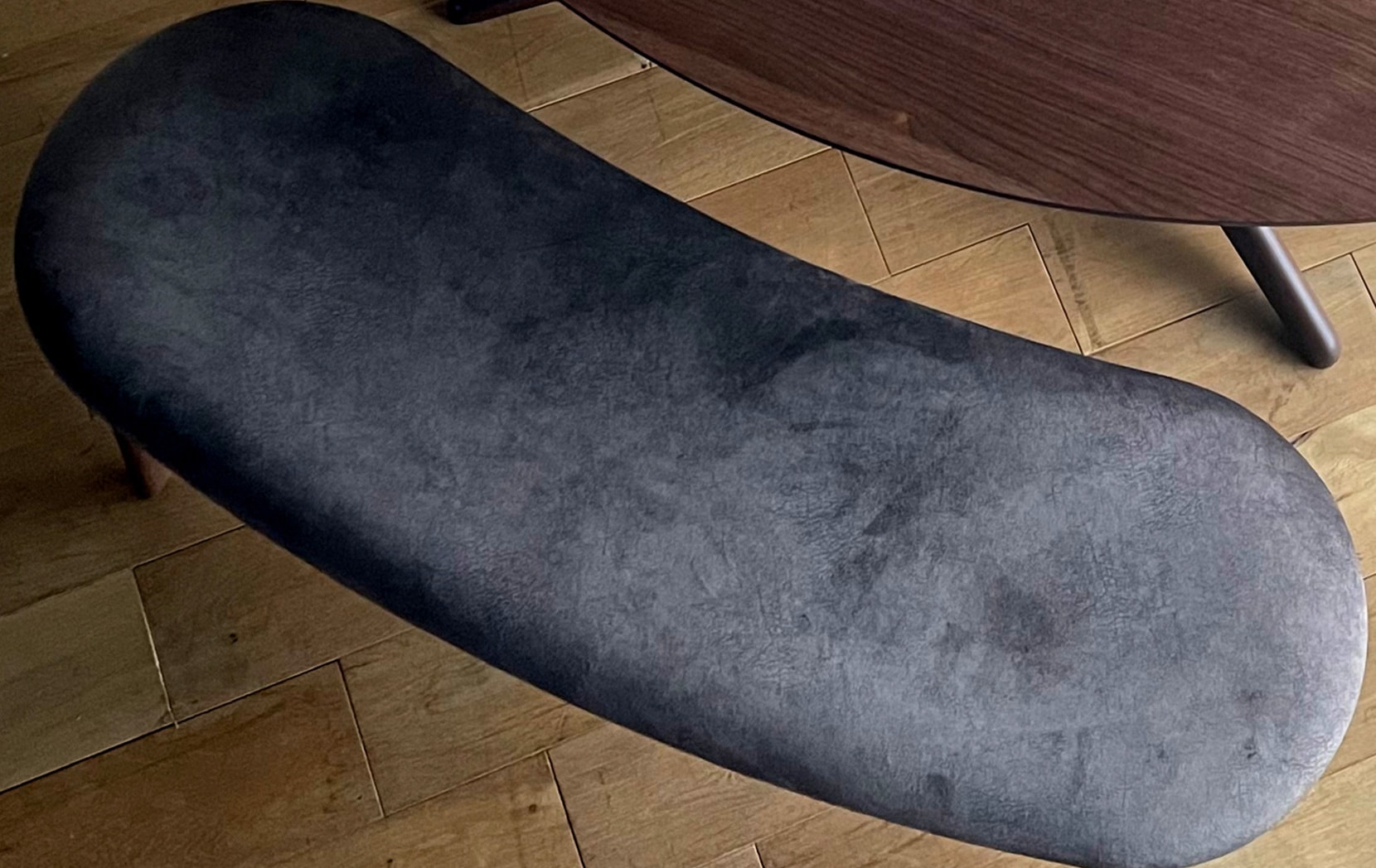 ミラージュの豆型テーブルに合わせて設計されたラウンドベンチは、